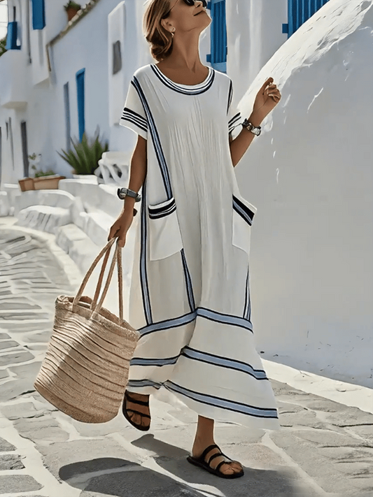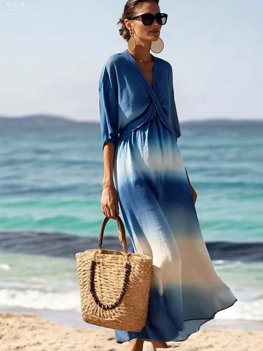 Women's Casual V-Neck Gradient Pattern Loose Dress