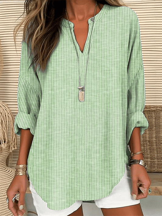 Women's Long Sleeve v-Neck Solid Color Loose Striped Shirt