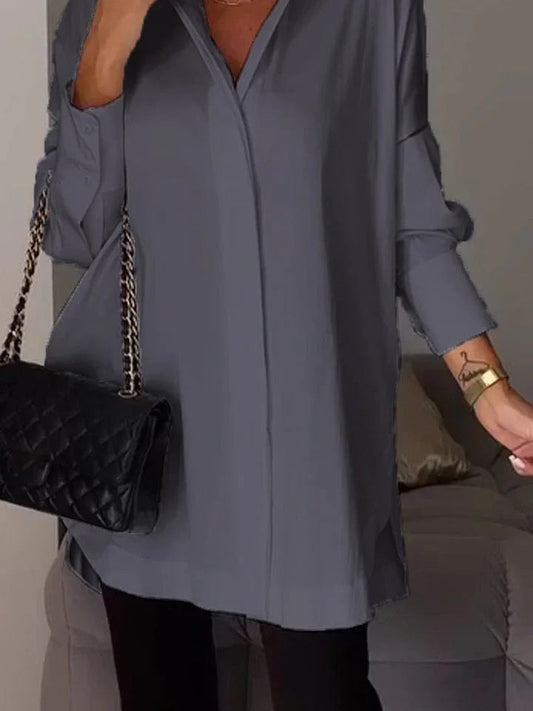 Women's Long Sleeve V-Neck Solid Color Notch Collar Shirt Casual Button-Down Shirt Top