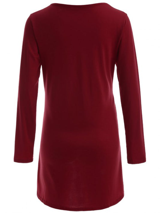 JO | Retro Christmas basic model long sleeve embroidered neckline slim-fit ladies dress