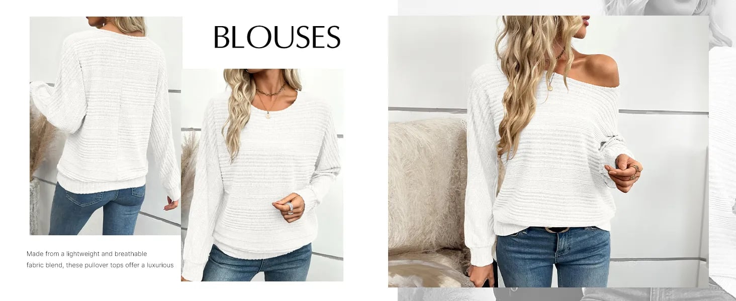 ⏰Women's Soft Solid Batwing Sleeve Pullover Long Sleeve Top