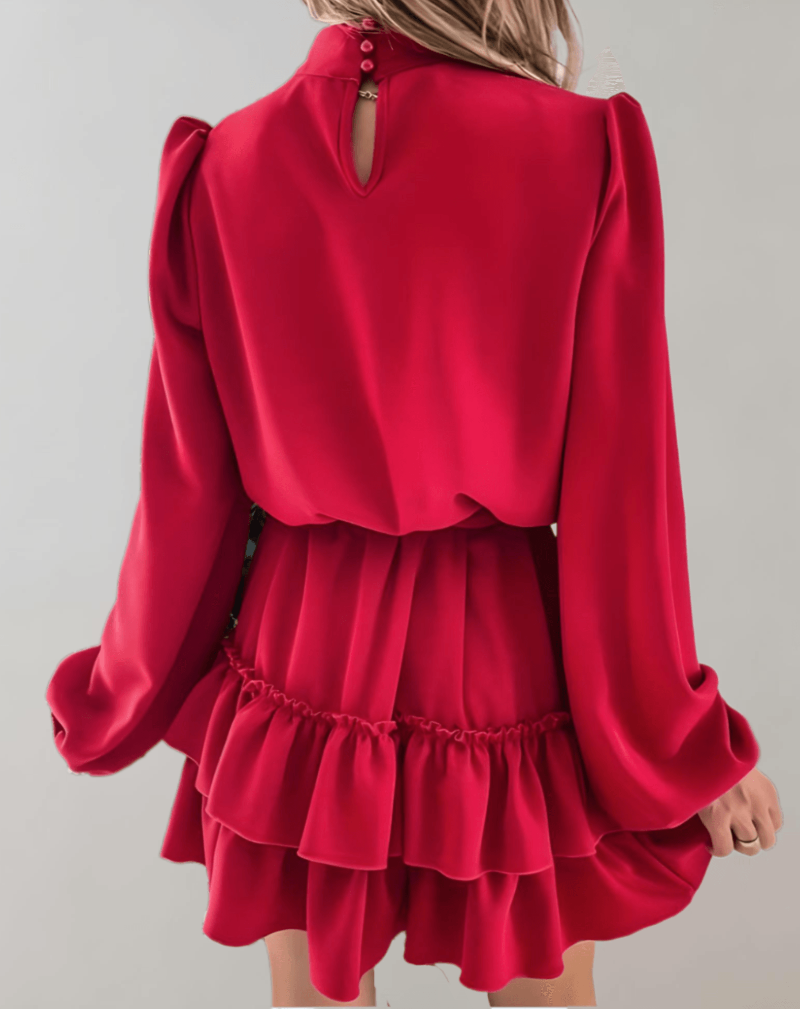JO | Red Christmas mini dress in ruffle style dress